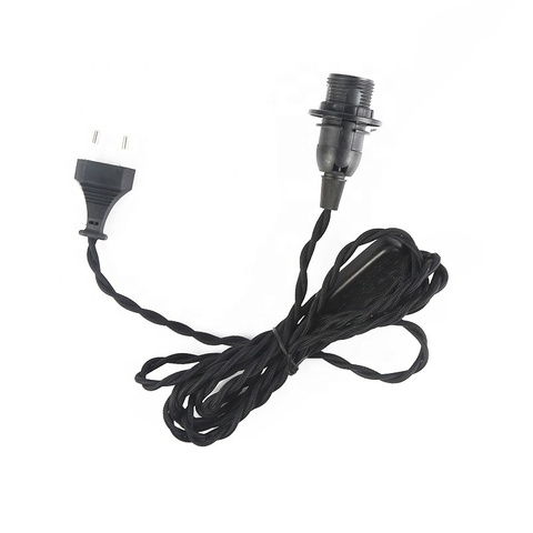 Cable textil Vintage con interruptor de enchufe de la UE baquelita E27 soporte de lámpara de Base de bombilla roscada para juegos de cables de luz colgante