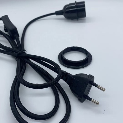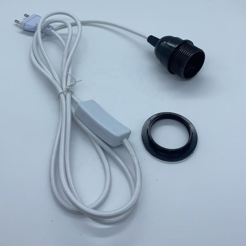 Interruptor en Línea 2 pines enchufe de la UE en cable textil eléctrico E27 portalámparas con cable
